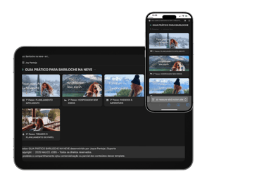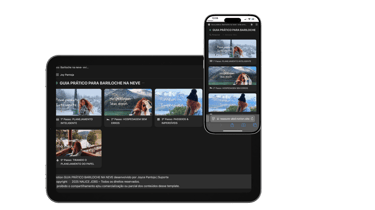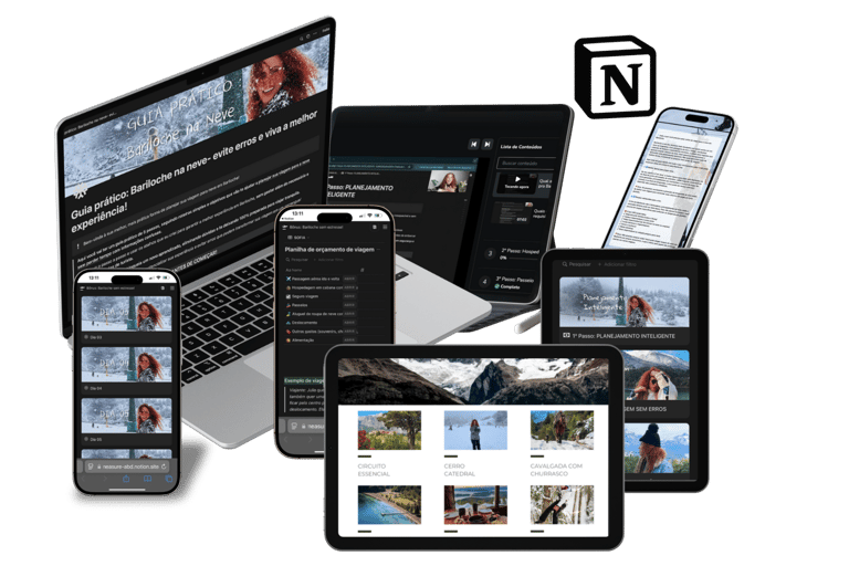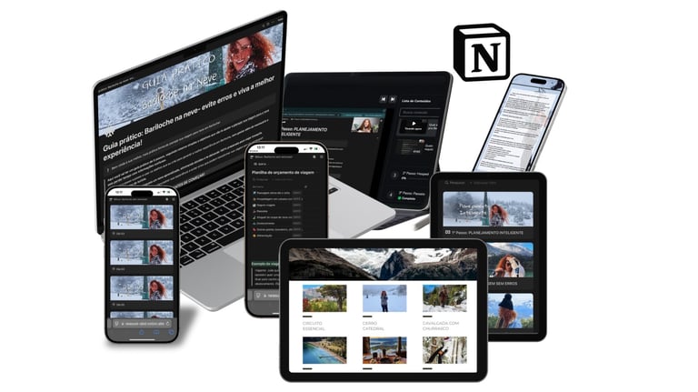 Plano Estratégico e material Interativo: Todo planejamento estruturado dentro do Notion, com roteiros, listas e ferramentas pra você acessar rapidamente pelo celular ou computador.
