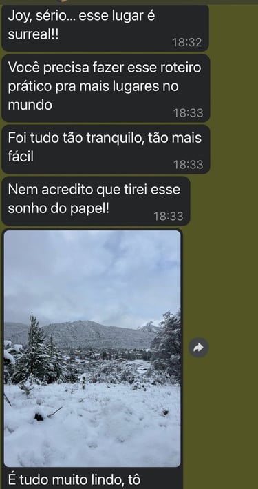 Hoje, ensina outras mulheres a viajarem com segurança e aproveitarem o melhor da neve em Bariloche, sem cair em ciladas turísticas e sem gastar além do necessário. Porque viagem boa é aquela que deixa memórias inesquecíveis – não perrengues.